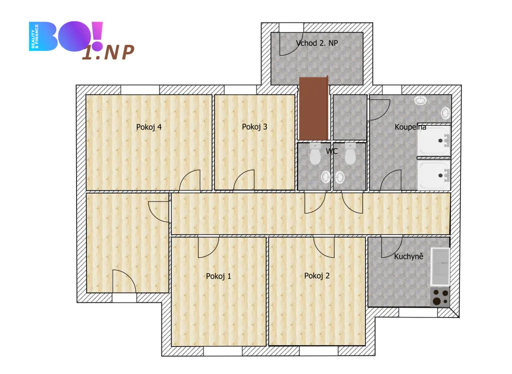 Kauce činí 2 měsíční nájmy. Provize RK je 1 měsíční nájem.