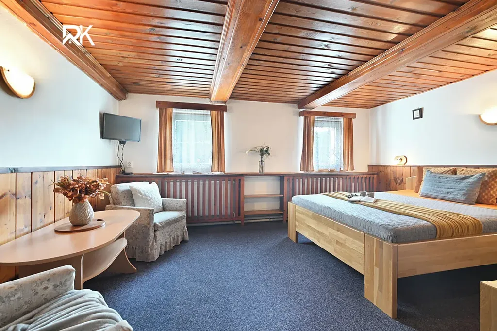 Hledáte výjimečnou investiční příležitost v srdci Národního Parku České Švýcarsko? Nabízíme k prodeji zavedený rodinný penzion s restaurací, situovaný v centru obce Jetřichovice, která je oblíbeným výchozím bodem pro výlety do nádherných skalních labyrintů. Z penzionu je výhled na Mariinu skálu, vzdálenou 1,5 km, a v blízkosti se nachází Dolský mlýn, známé místo z českých pohádek. Původní historická budova z 19. století prošla průběžnými rekonstrukcemi, přičemž se zachovaly autentické prvky jako klenbové stropy v přízemí a suterénu. Renovace zahrnovaly mimo jiné nové elektroinstalace, vodoinstalace, střešní krytinu, sluneční kolektory a Eurookna. Penzion od roku 1999 provozuje jediný majitel, což přineslo stabilní klientelu. Penzion nabízí restauraci s kapacitou pro 60 hostů, útulnou vinárnu s krbem pro 24 osob a profesionálně vybavenou nerezovou kuchyni. Ubytovací kapacita čítá 45 lůžek v 18 pokojích, z nichž každý je vybaven vlastní koupelnou, televizí a Wi-Fi připojením. Doplňkový servis zahrnuje kadeřnictví, kolárnu s nabíjením elektrokol a prostor pro wellness, který čeká na dokončení rekonstrukce. Technické zázemí zahrnuje tři garáže, vlastní parkoviště s kapacitou pro 20 aut, dvě bytové jednotky (3+1 a 2+kk) a pochozí půdní prostory, kde je možné vybudovat další jednotky. Objekt využívá ústřední vytápění na LTO s částečným ohřevem teplé vody pomocí solárních kolektorů a dvěma krby pro komfortní vytápění. Penzion má výbornou dopravní dostupnost – je snadno přístupný po asfaltové příjezdové cestě, v blízkosti vlakového nádraží, autobusových zastávek i MHD. Tato nemovitost je ideální pro podnikatele, kteří hledají stabilní investici s vysokým potenciálem návratnosti v jedinečné lokalitě. V případě zájmu o prohlídku nás neváhejte kontaktovat.