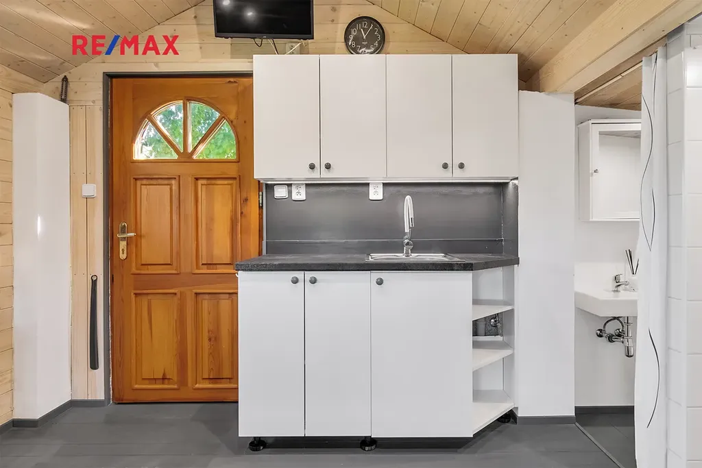 - vybavení: dřevěná podlaha, dřevěná okna, kuchyňská linka s přípojkou na myčku, umyvadlo, sprcha a WC, šatna s místem na pračku, lednice, TV