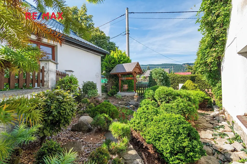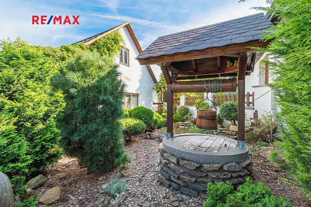Součástí je také novostavba celoročně obyvatelné chaty (28 m²), kterou lze plně využívat například i během rekonstrukce, dále prostorná garáž s dílnou (37 m²).