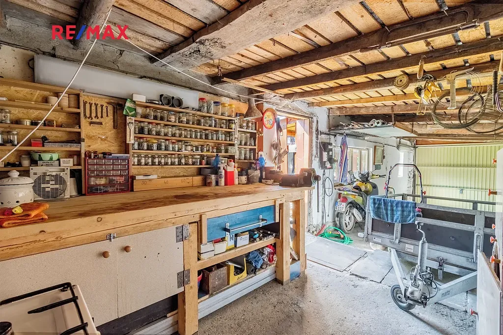 - garáž s dílnou (37 m²) – ideální pro parkování nebo zázemí pro kutily
