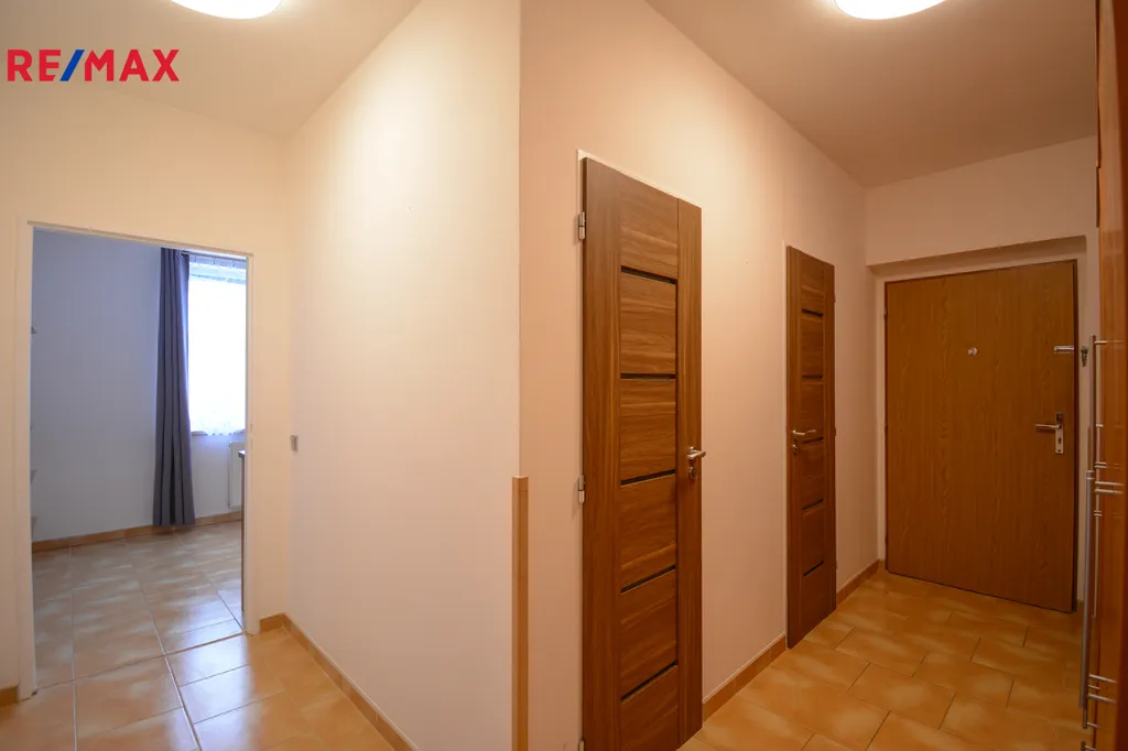 Byt má celkovou podlahovou plochu 62,43 m² a nabízí prakticky řešený prostor pro pohodlné bydlení. K bytu náleží lodžie o výměře 3,81 m² přístupná přímo z obytného pokoje a dále sklepní kóje o velikosti 3 m² umístěná v přízemí domu. Dispozice tvoří vstupní chodba, samostatný pokoj, kuchyň s velkou kuchyňskou linkou do tvaru L, koupelna se sprchovým koutem a přípojkou na pračku, samostatné WC a prostorný obývací pokoj se vstupem na lodžii. Tento pokoj je prakticky rozdělen sádrokartonovou příčkou, takže zde vznikl oddělený prostor vhodný například jako šatna, pracovní kout nebo místo pro postel.