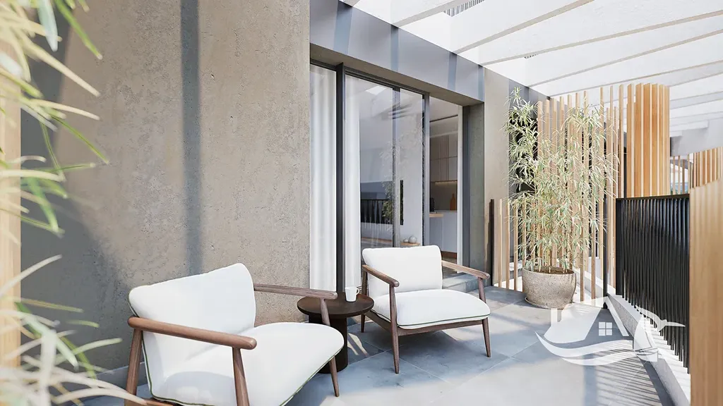 Interiéry jsou vybaveny moderními prvky, klimatizací a vestavěnými skříněmi, které zjednodušují organizaci domácnosti, a základními spotřebiči pro pohodlí každodenního života. Terasy poskytují další prostor pro relaxaci na čerstvém vzduchu a plně využívají středomořského klimatu při snídani i večerních posezeních s výhledem. Společné zázemí zahrnuje dobře vybavenou posilovnu, která umožní udržet aktivní životní styl bez nutnosti docházení, a prostory navržené pro odpočinek i společenské aktivity.