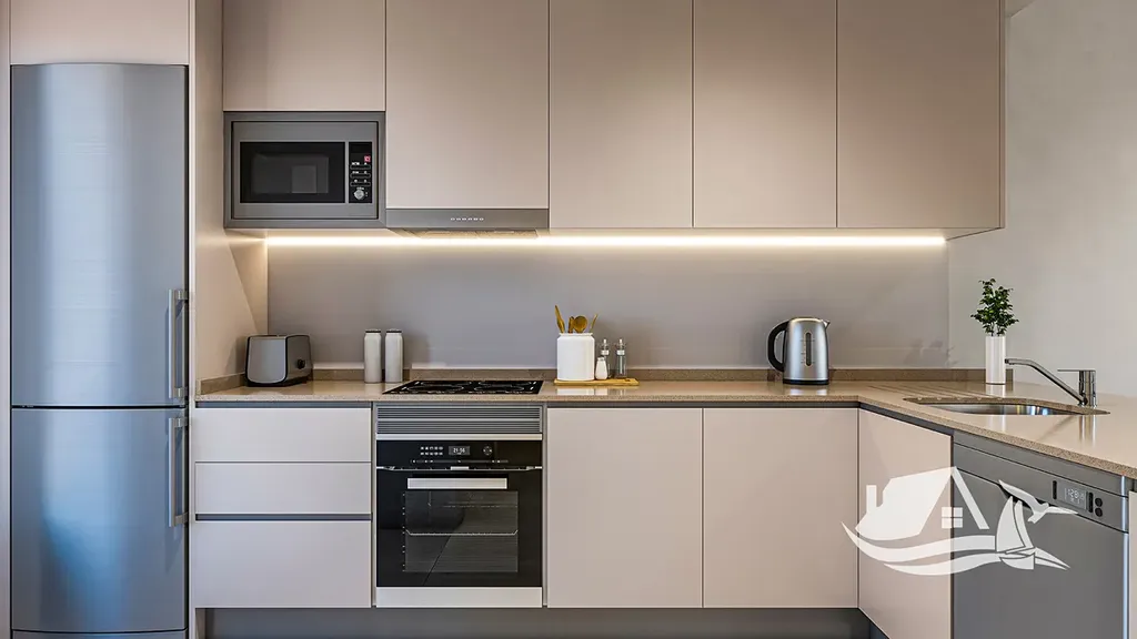 Interiér tvoří světlý a otevřený obývací prostor s moderní kuchyní, který plynule navazuje na zahradu. Ta vytváří soukromé místo pro ranní kávu, odpočinek na lehátku i večerní posezení s rodinou a přáteli. Dispozice je navržena s důrazem na praktičnost a pohodlí, aby apartmán splňoval nároky na rekreační i celoroční bydlení. Atmosféra spojuje středomořský životní styl s pocitem soukromí a klidu.