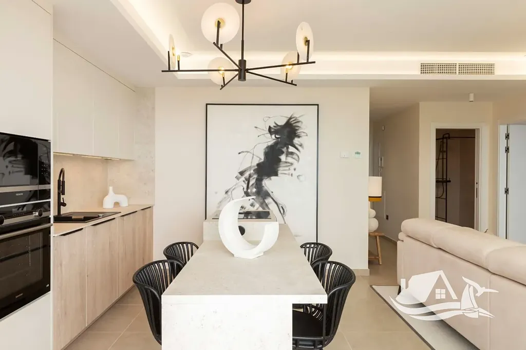 Interiéry jsou kompletně zařízené a vybavené prvotřídními spotřebiči, podlaha z porcelánové dlažby dodává interiérům eleganci a dlouhověkost, integrované chytré systémy zjednodušují každodenní provoz domácnosti a vestavěné skříně zároveň šetří místo a udržují pořádek. Podlahové vytápění zajišťuje útulné prostředí i v chladnějších obdobích a videotelefon poskytuje další úroveň bezpečí a pohodlí pro obyvatele, takže je domov připravený k nastěhování bez dalších starostí.