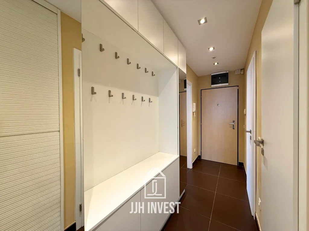 Dispozice: obývací pokoj se sklopnou manželskou postelí, díky které lze byt využívat obdobně jako 3+1, dále samostatný pokoj, kuchyni, koupelnu a oddělené WC. Pračka se sušičkou je prakticky umístěna ve výklenku chodby. Byt je vybaven inteligentním systémem Siemens (KNX) pro regulaci vytápění a osvětlení, senzory CO₂ a zabezpečovacím systémem.