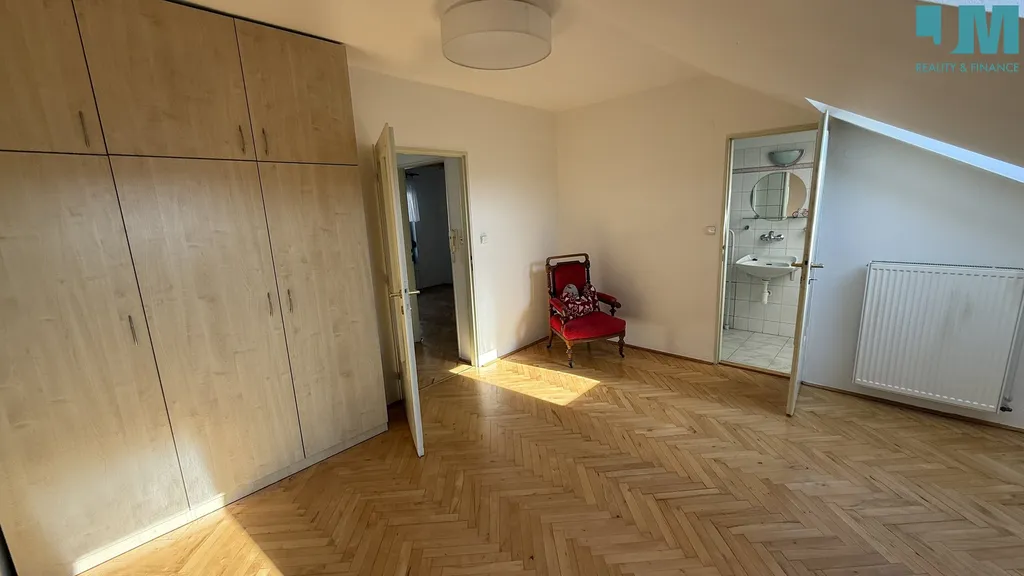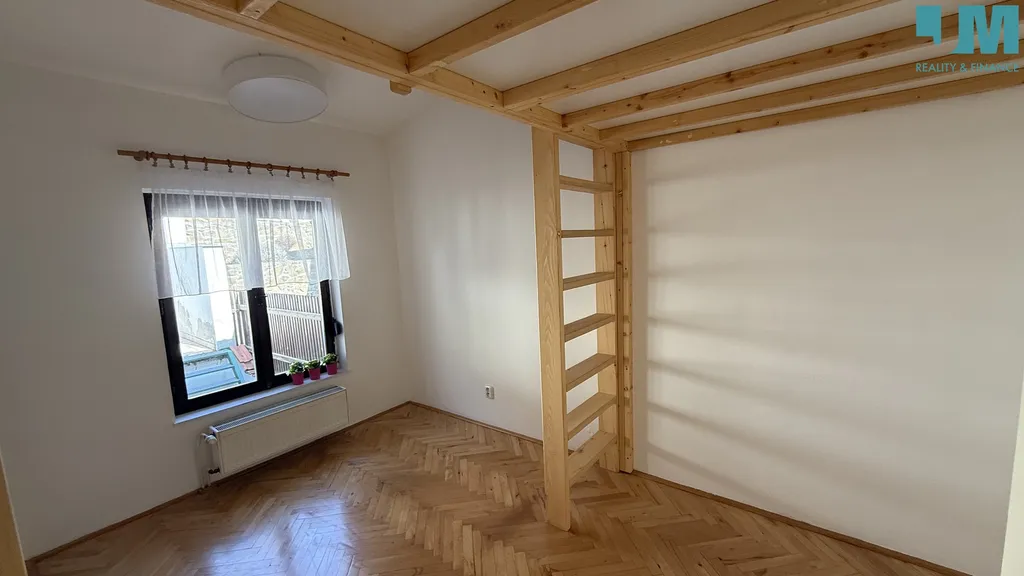 Do obytného podkroví se vstupuje po pěkném dřevěném schodišti, jsou zde dva útulné pokoje, koupelna se sprchovým koutem a zimní zahrada. Přes ni pak vstup na venkovní terasu, ze které vede schodiště do svahovité udržované zahrady s krásným výhledem do okolí.