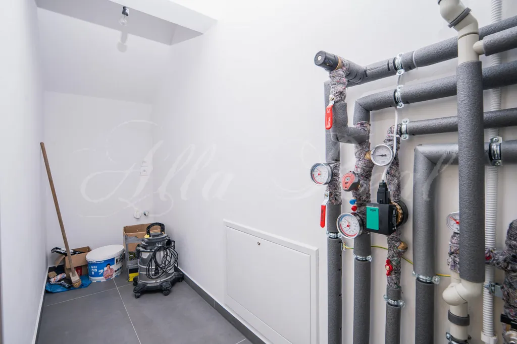 Dům byl dokončen v roce 2025,  je tedy zcela nový a připravený k okamžitému nastěhování. Tepelnou pohodu zajišťuje podlahové vytápění, okna jsou opatřena trojskly, a venkovní žaluzie chrání před slunečním zářením i hlukem. Systém rekuperace vzduchu zaručuje čerstvý vzduch, zatímco vinylové podlahy jsou nejen estetické, ale i praktické na údržbu. Všechno je navrženo tak, aby poskytovalo maximální komfort.