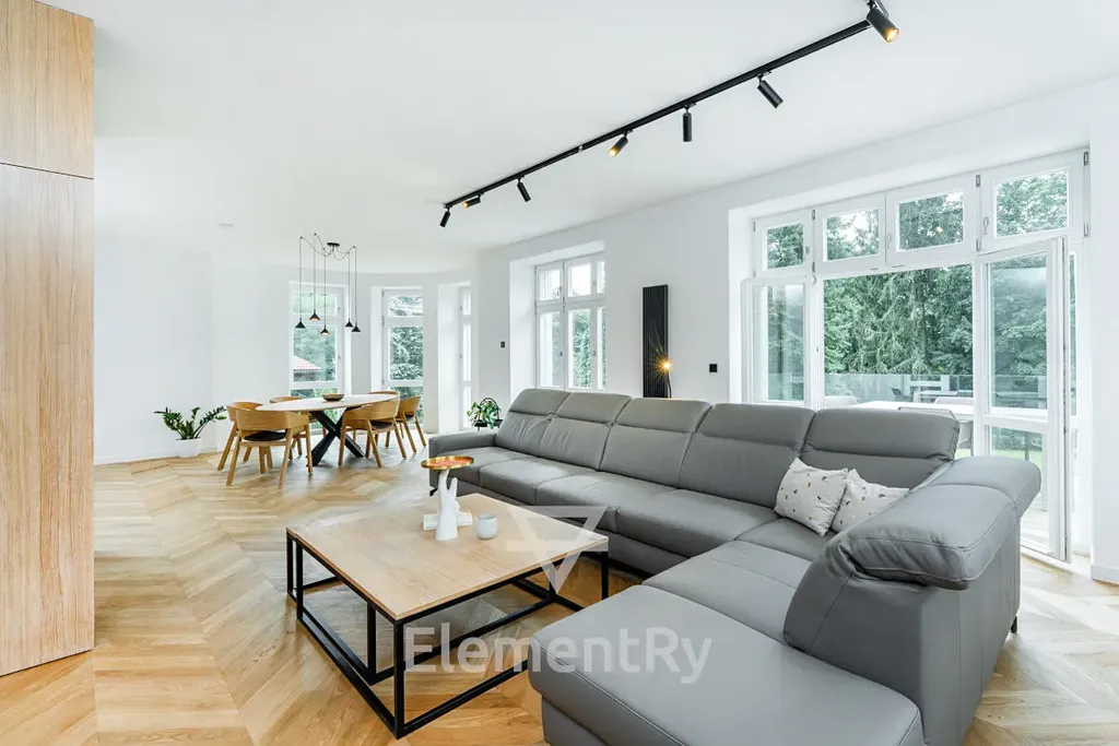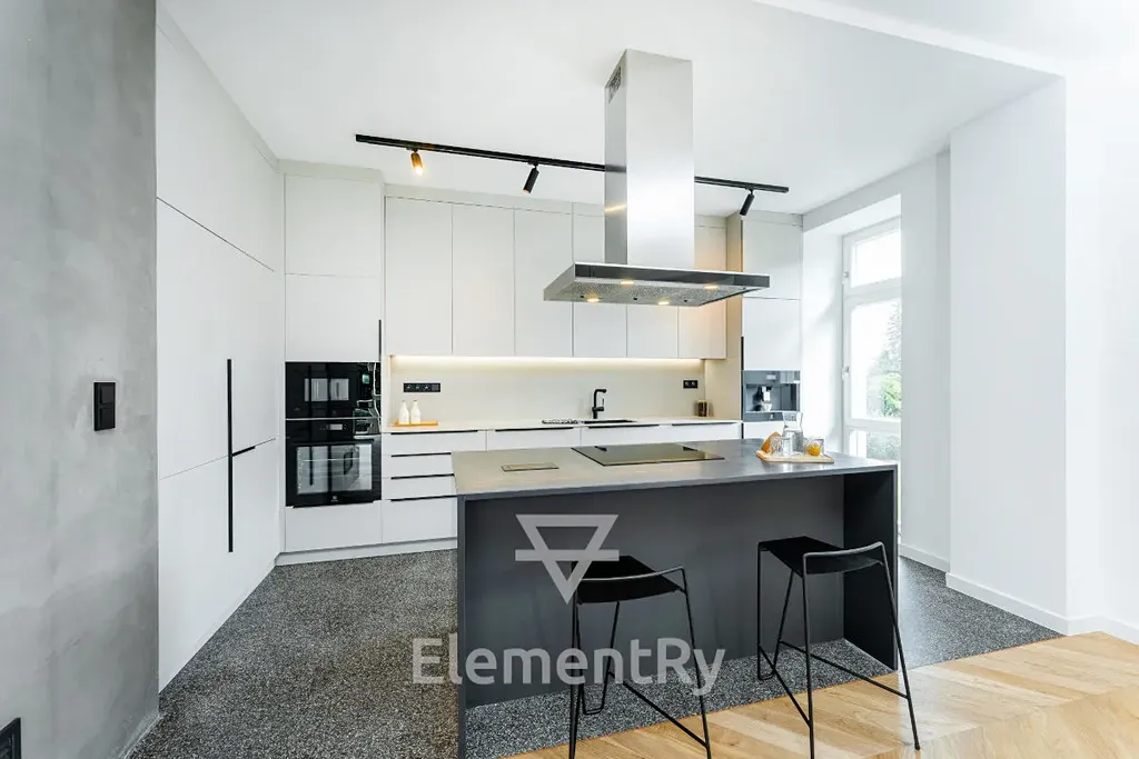 Byt samotný se nachází v prvním patře nově zrekonstruované prvorepublikové vily. Je plně vybaven zakázkovým, na míru dělaným nábytkem i kvalitními spotřebiči.