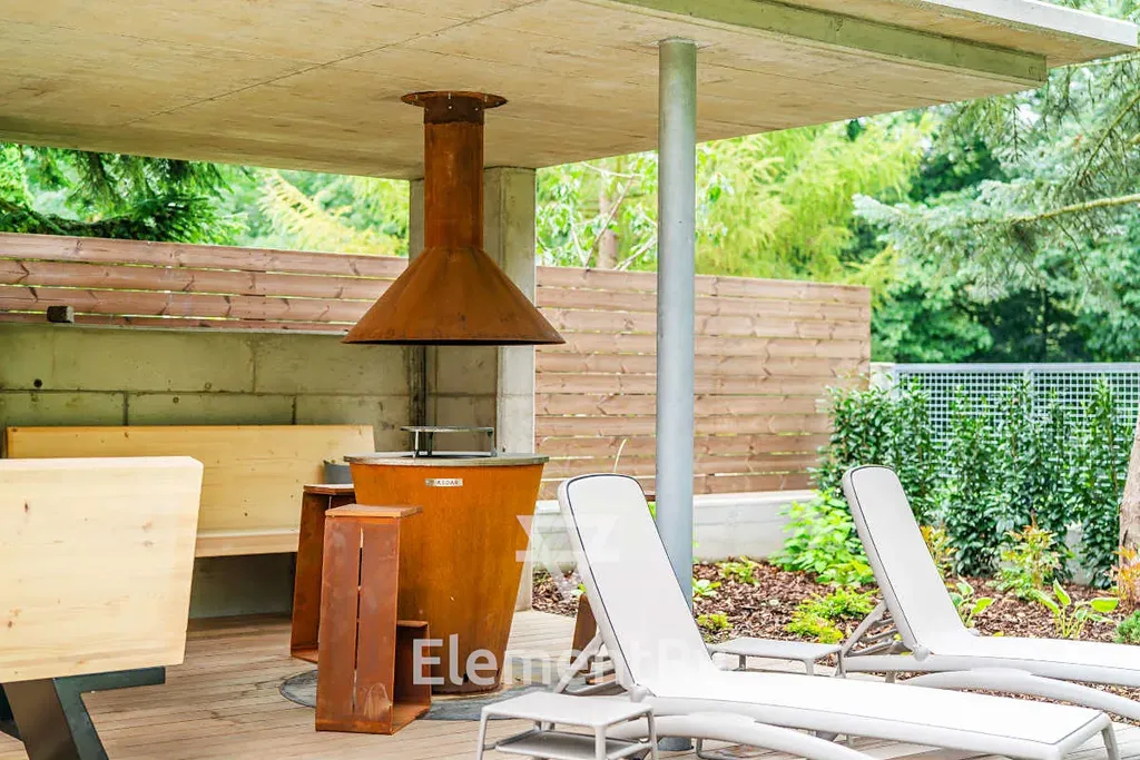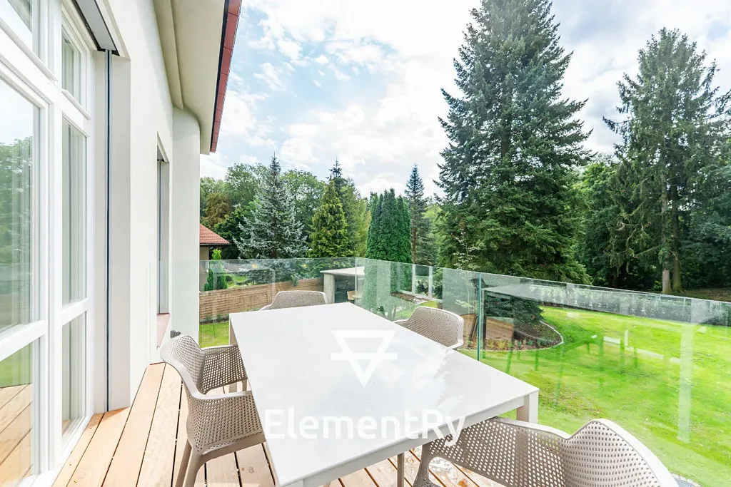 Byt disponuje balkonem s výhledem do zahrady. Součástí pronájmu je i přístup na sdílenou zahradu s posezením, grilem a ohništěm. O veškerou údržbu zahrady pečují zahradníci a automatická sekačka. Úklid interiéru a společných prostor zajišťují profesionální firmy. Samozřejmostí je soukromé parkování přímo za branou na pozemku. Dům je podsklepen a ke každé bytové jednotce náleží sklepní kóje.