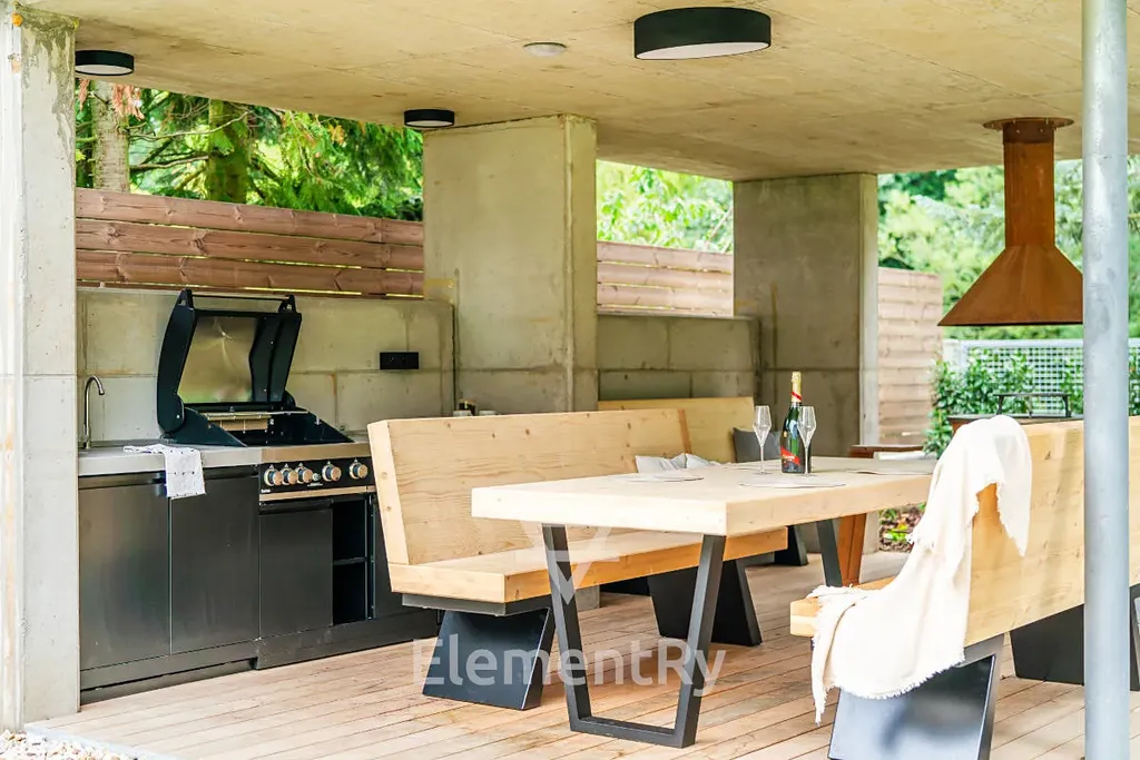 - kompletní zázemí pro komfortní život (gril, ohniště, posezení)