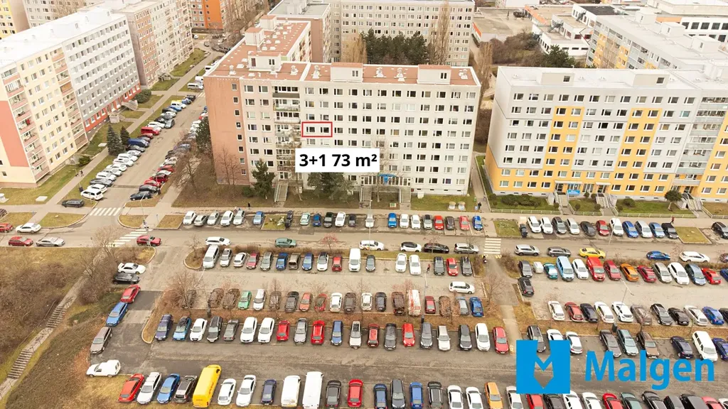 Velkým benefitem je prostorné parkoviště přímo před domem, kde lze parkovat zdarma a bez omezení.