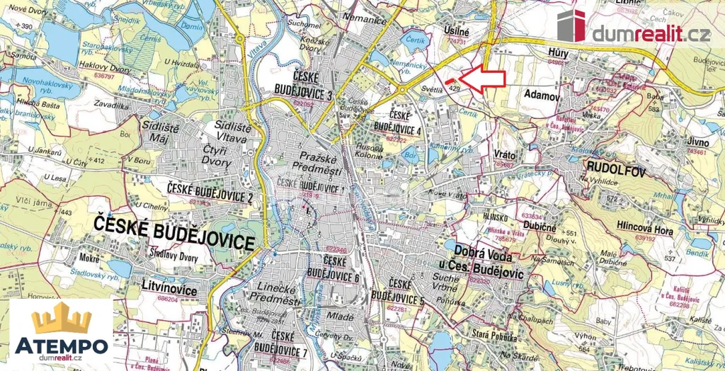 Dumrealit.cz Vám zprostředkuje prodej stavebního pozemku o rozloze 1.632 m² v Úsilném ve městě České Budějovice. Prodávaný pozemek par. číslo 271/3 v kú Úsilné je dle Územního plánu města České Budějovice vedený z 1/2 jako plocha občanského vybavení a z 2/2 je pozemek veden k rekreaci. U hranice pozemku vede elektřina, po smluvním ujednání s E.gd možnost parcelu napojit na distribuční síť. Ve vzdálenosti cca 400 m vede plyn, vodovod a kanalizace. Pozemek lze s menšími úpravami využít k rekreaci (zahrada). K pozemku se dostaneme po obecní prašné komunikaci. Doporučuji prohlídku, pozemek se nachází cca 10 minut od centra města České Budějovice. K dispozici máme kompletní zákres inženýrských sítí, Územně plánovací informaci s možnostmi výstavby a využití pozemku. Možnost koupě i 2 pozemku vyznačeného oranžově na fotografiích, par. č. 269/4 zapsané na LV 167 v k.ú. Úsilné. Více informací Vám poskytne realitní makléř Tomáš Pelda z realitní kanceláře A TEMPO fungující pod ochrannou známkou dumrealit.cz. Ev. číslo: 654875.