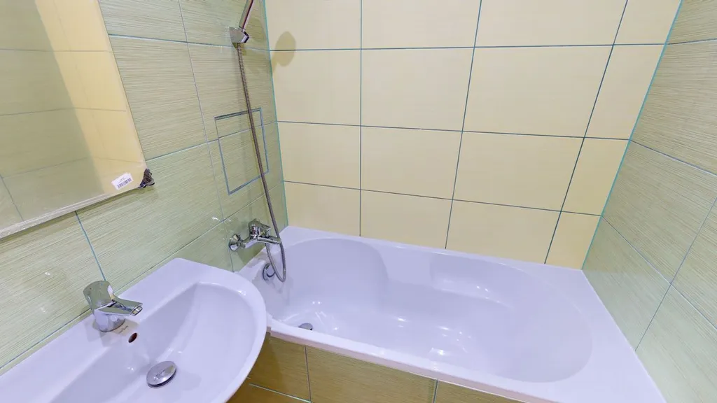 Koupelna s vanou a umyvadlem a možností připojení pračky. Toaleta je odděleně.