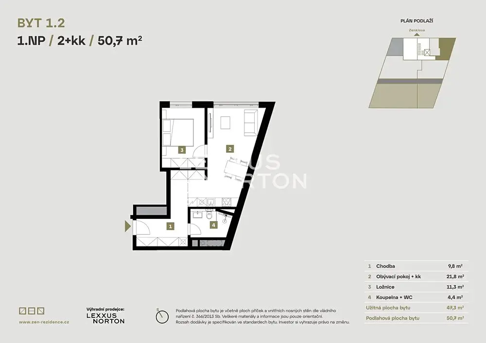 K prodeji formou postoupení práv ze Smlouvy o smlouvě budoucí kupní nabízíme moderní byt 2+kk o celkové ploše 50,7 m², který se nachází v 1. nadzemním podlaží výjimečného projektu ZEN Rezidence v pražské Libni, který bude k nastěhování již v druhé polovině letošního roku.