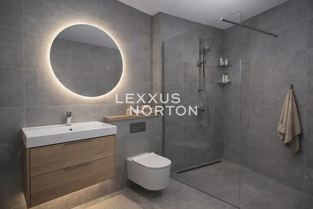 Dokončení bytu ve vysokém standardu zahrnuje vinylové podlahy v dekoru dubu, bílé interiérové dveře, velkoformátové obklady koupelen v šedé barvě a vybavení renomovaných značek SAT a GROHE. Izolační okna s trojskly zajišťují dokonalou tepelnou i zvukovou izolaci, zatímco řízené větrání s rekuperací tepla a příprava pro elektrické venkovní žaluzie přispívají ke komfortu bydlení. Bezpečnostní vstupní dveře třídy 3 poskytují maximální bezpečí. K bytu náleží sklepní kóje o velikosti 2,7 m2 v podzemním podlaží.