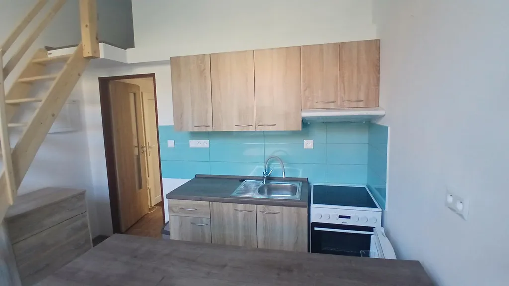 Ve výhradním zastoupení majitele nabízíme k pronájmu byt o velikosti 1+kk s galerií na spaní (mezonet), Brno - Královo Pole, ul. Skácelova, cihla, přízemí, po kompletní rekonstrukci, částečně zařízený (kuchyňská linka s digestoří a s elektrickým sporákem, protilinka - barový pult, lednice, 2 x postel, skříň, komoda). Celková plocha činí cca 34 m2, zděné jádro, prostorná koupelna se sprchovým koutem, WC samostatně. Na podlaze dlažba a vinyl, nová linka, plastová okna. Vytápění - elektrické přímotopy, ohřev vody - elektrický bojler. Majitel upřednostňuje dlouhodobý pronájem. Vratná kauce 16.500,-Kč. Měsíční nájemné 12.000,-Kč + 4.500,-Kč zálohy na služby a energie. Bez domácích zvířat. Byt je určen pro pracujícího nebo pracujícího studenta. Volný ihned. Více info v RK.