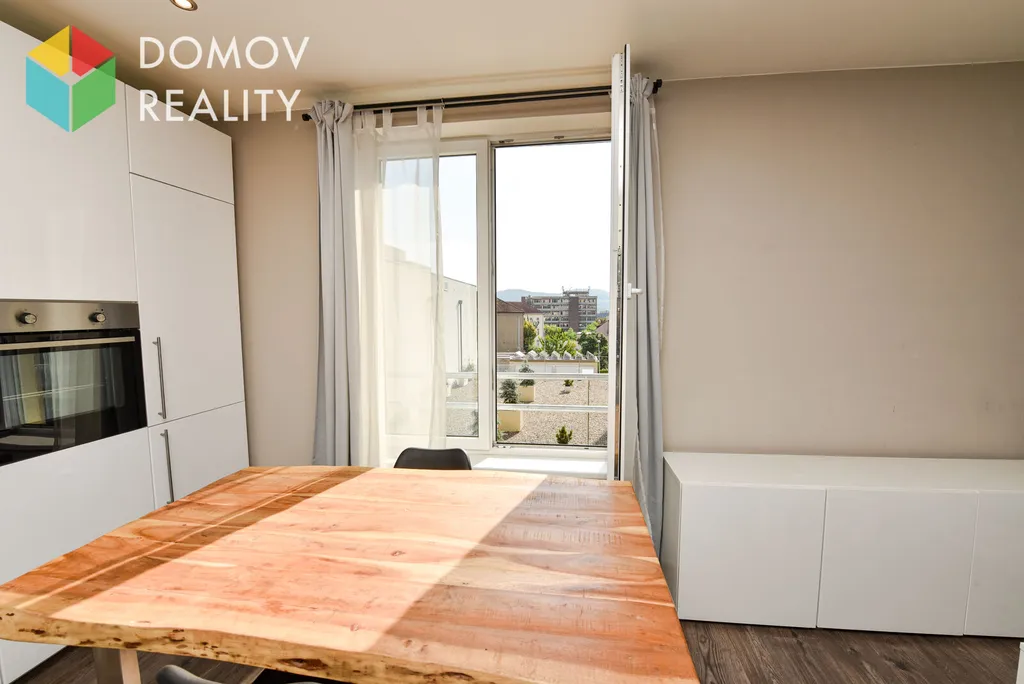 Bonusem této nabídky je vlastní garážové stání v suterénu domu, které už je zahrnuto v ceně nájmu. Byt je částečně zařízený - pěkný jídelní stůl s dřevěnou deskou, 2 židle, úložné skříňky, konferenční stolek a sedací pohovku.