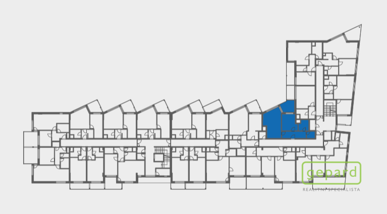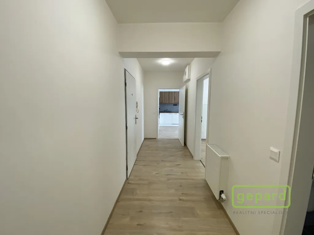 Plocha bytu 54,2 m², terasa 7,5 m², šatna 2,8 m² a sklep 3,3 m². Byt je situován do 3. nadzemního podlaží bytového domu. Součástí nájmu je i rohová terasa, která je přístupná francouzskými dveřmi z ložnice i z obývací části. Kuchyňská linka včetně trouby a myčky, koupelna a toaleta s keramickým obkladem, v obytných částech bytu je plovoucí podlaha s dekorem dřeva a šatna o výměře 2,8 m². Součástí je zděný sklep o výměře 3,3 m² situovaný v suterénu budovy.