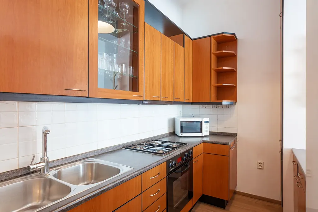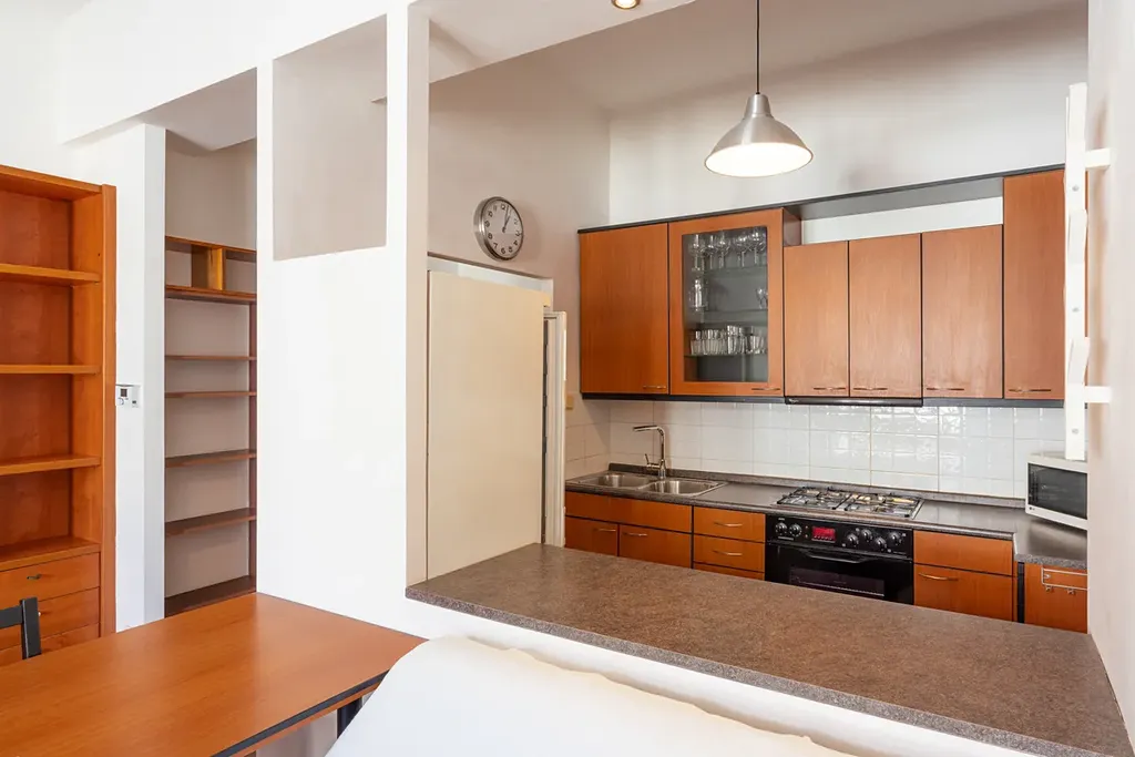 Ve výhradním zastoupení nabízím cihlový byt o velikosti 2+kk, poblíž Smíchovské a Palackého náplavek, cca 1 minutu od tramvaje nebo 5 minut pěšky od metra Anděl nebo Palackého náměstí. Byt se skládá ze vstupní chodby, ze které se jde do obývacího pokoje s kuchyňskou částí (o velikosti 25,7m2), kde je umístěna kuch. linka vč. sporáku, digestoře, lednice s mrazákem, mikrovlnnou troubou. Pokoj (o velikosti 23,2m2) je samostatný a je zde položena nová laminátová podlaha a zabudována vestavěná šatní skříň.