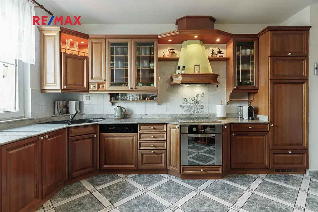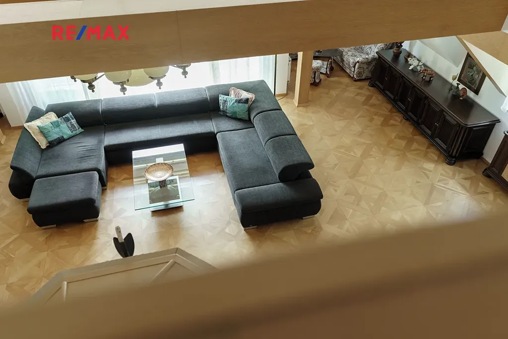 - stylové dřevěné prvky, parkety, lustry a elegantní detaily v celém interiéru