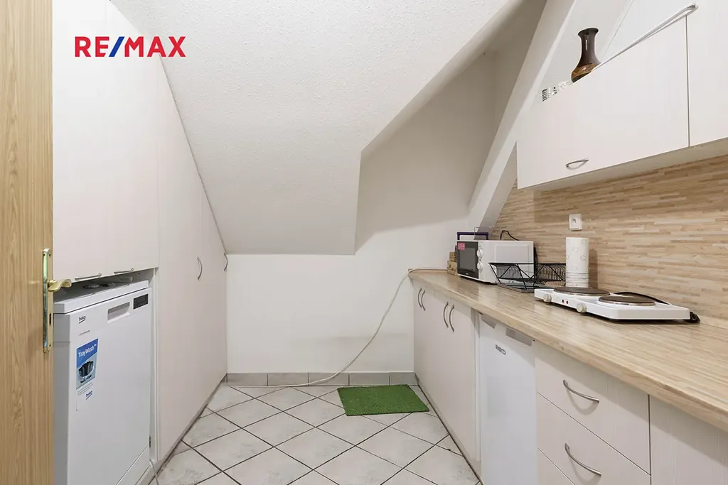 SOUČÁSTÍ DOMU JE TAKÉ PENZION, ideální pro ubytování hostů nebo dlouhodobé pronájmy – každý pokoj má vlastní koupelnu. K dispozici je také místnost na přípravu jídla s myčkou a ledničkou.