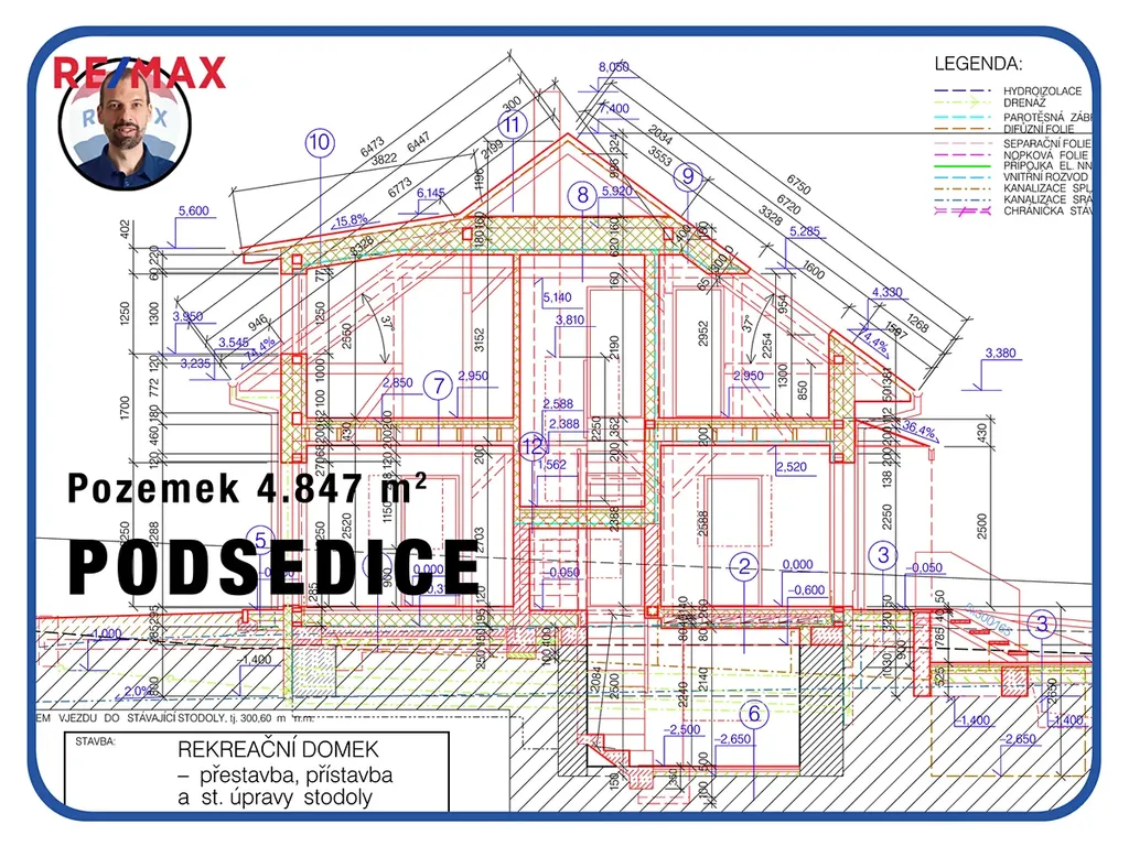 • Zpracovaný projekt dvoupodlažní dřevostavby s přípojkami a v pokročilé fázi schvalování – zásadní výhoda pro rychlé zahájení výstavby.