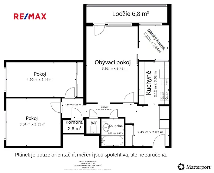 Samostatná kuchyň – v minulosti doplněná lehkou příčkou, díky které vznikla malá místnost s oknem. Ideální jako dětský pokojík, pracovna nebo herní koutek.
