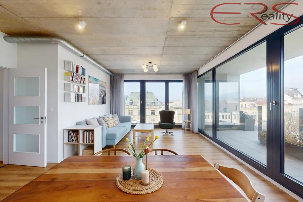Z oken máš Ještědský hřeben i staré město. Ráno kafe s Ještědem, večer světla Liberce. A pořád jsi doma.
