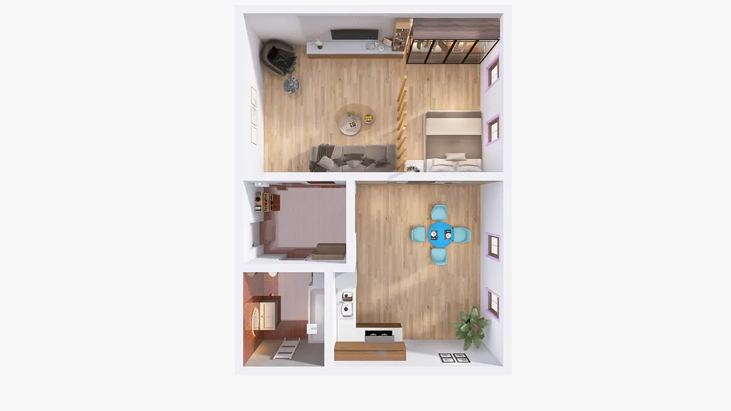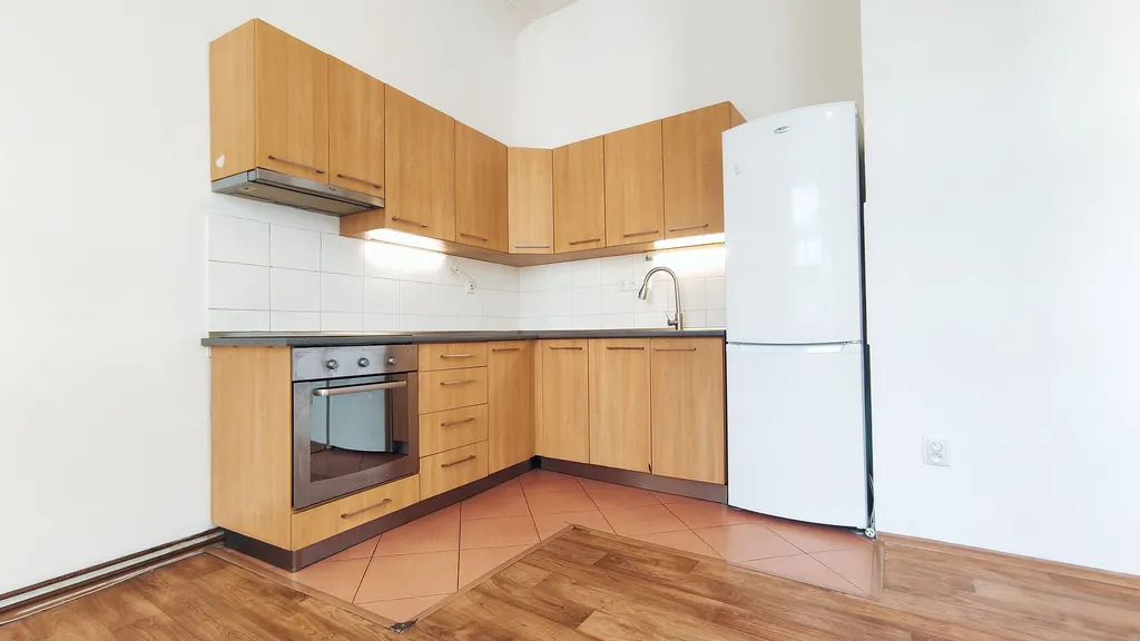 Byt je vybaven kuchyňským koutem s kuchyňskou linkou včetně elektrické troubou se sklokeramickou varnou deskou, digestoří a lednicí s mrazícím boxem ve spodní části. Místnost s kuchyňským koutem, pokoj a koupelna jsou propojeny předsíní/zádveřím. Koupelna je vybavena vanou, umyvadlem, WC a prostorem pro pračku (s bočním otvíráním) a sušičku prádla. Vytápění a ohřev vody je řešen plynovým kotlem přímo v bytě. Zálohy na spotřebu el. energie a plynu si nájemce převádí na svoji osobou a stanovuje si sám výši záloh, takže i následná vyúčtování jsou maximálně transparentní.