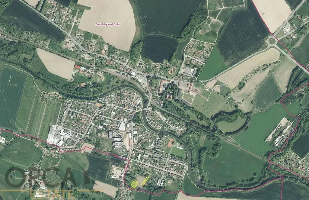 Exkluzivně nabízíme k prodeji dva zajímavé pozemky v k.ú. Doudleby nad Orlicí v okrese Rychnov nad Kněžnou. Jedná se o parcely č. 824/8 a 824/38 o celkové výměře 2841 m2 zapsané na LV 76. Šířka parcely č. 824/8 činí cca 37 m a parcela č. 824/38 měří cca 14 m. Dle katastru jsou pozemky evidovány jako trvalý travní porost, jsou rovinaté a nachází se na jihu obce. Dle územního plánu jsou pozemky součástí rezervní plochy pro bydlení v RD - pro možnost výstavby je nutná změna ÚP.