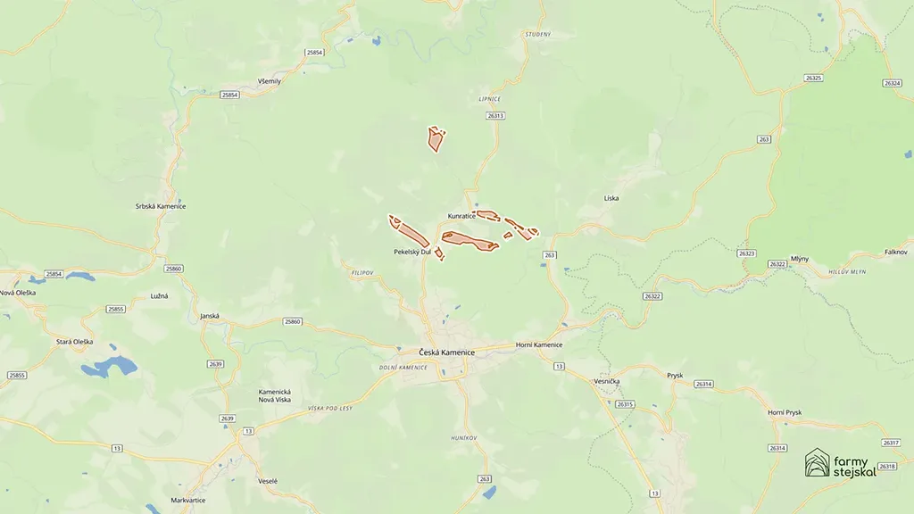 V exkluzivním zastoupení přímého majitele nabízím k prodeji rozsáhlý zemědělský celek o výměře 331 914 m² (33,19 ha) v katastrálním území Kunratice u České Kamenice, okres Děčín, Ústecký kraj.
