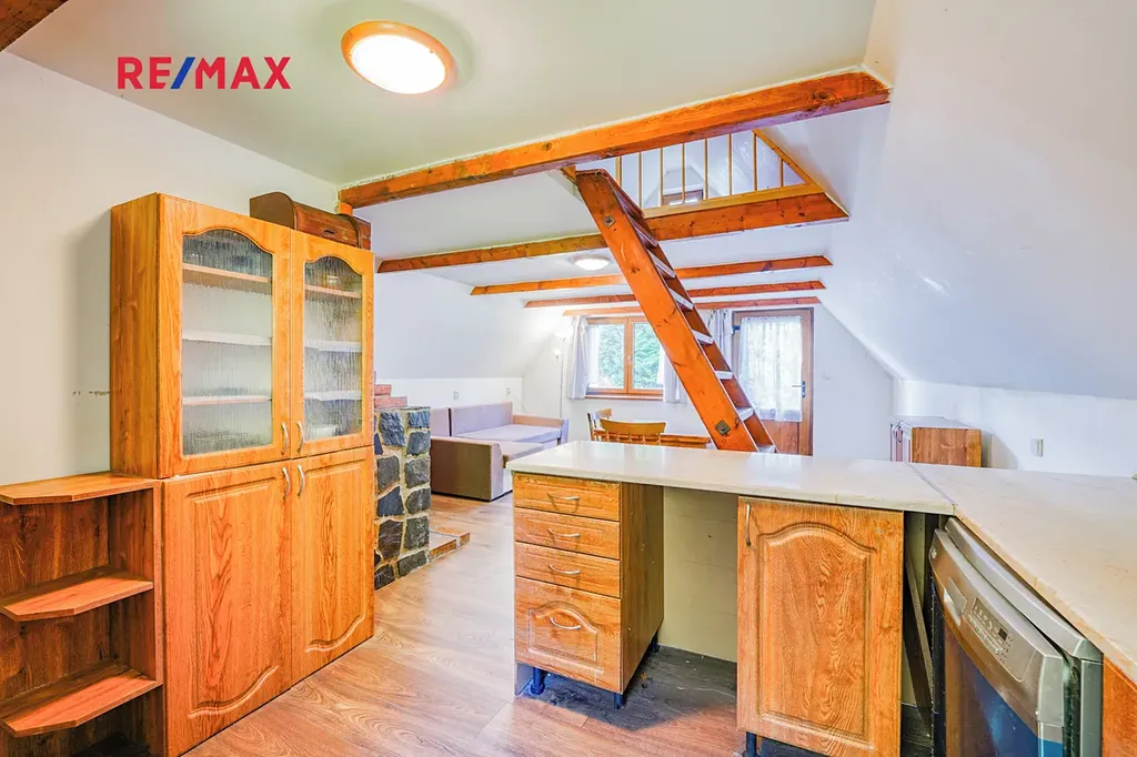 Chata je rozdělena do tří podlaží, v 1. podlaží se nachází vstupní chodba a místnost kterou lze využít například jako dětský pokoj. Ve 2. podlaží se nachází obývací pokoj s krbem, kuchyní a koupelnou se sociálním zázemím. Ve 3. podlaží nalezneme další pokoj který lze využít například jako dětský pokoj, ložnici a nebo pracovnu. Dále je na zahradě k dispozici polozapuštěný bazén a domek pro zahradní náčiní. Díky vysokým vzrostlým stromům po obvodu pozemku nabízí zahrada dostatek klidu a soukromí. Chata prošla v roce 2016 kompletní rekonstrukcí včetně zateplení, je vybavena plastovými okny s dvojskly, elektroinstalací kompletně v mědi, plovoucími podlahy a střechou z plechové taškové krytiny. Vytápění je zde řešeno pomocí krbu a ohřev vody pomocí elektro bojleru.