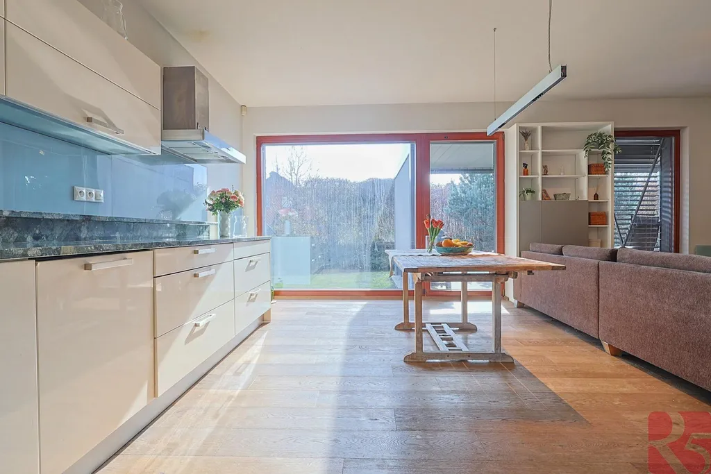 Prodej luxusního bytu 4kk 118m2 + terasa, zahrada, sauna, dvě garážová stání, sklep, komora, Praha - Uhříněves, ul. V Bytovkách, ideální místo pro rodinné bydlení.
