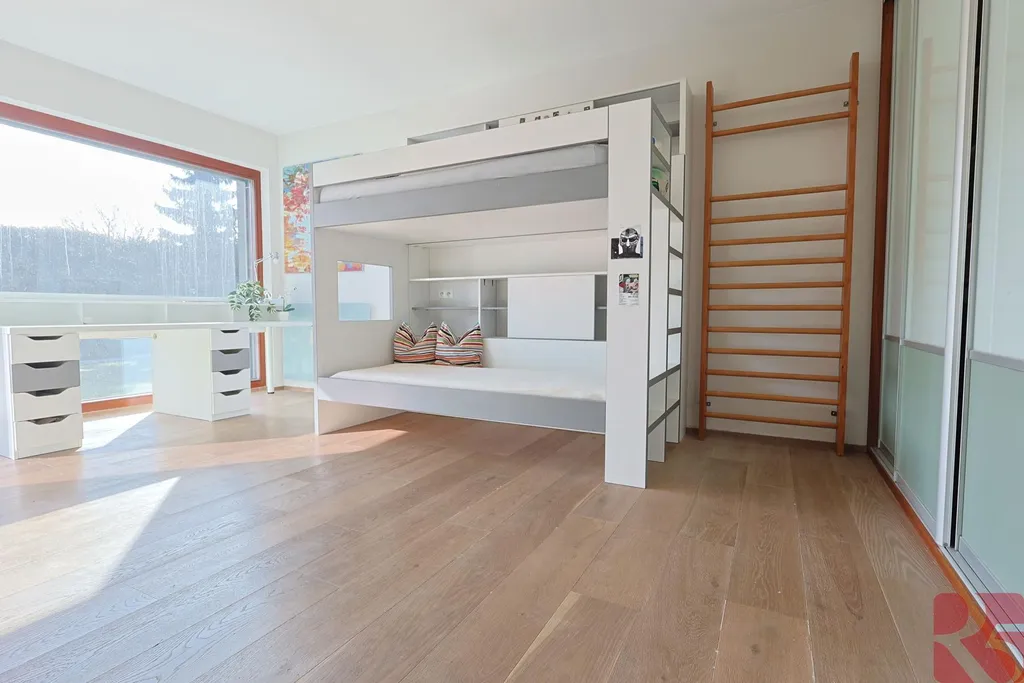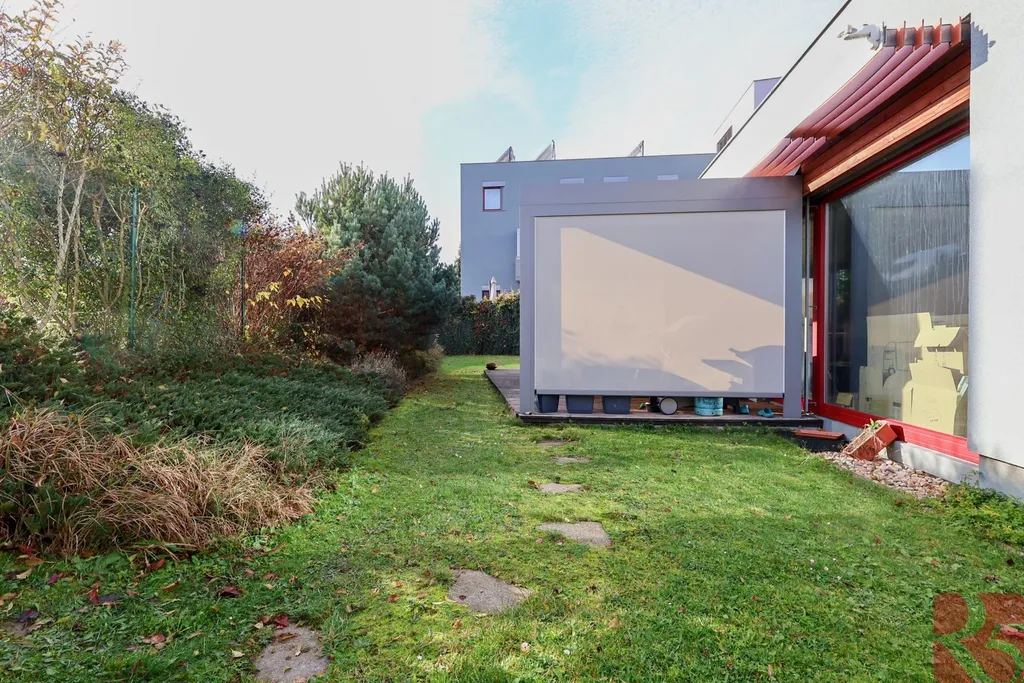 K dispozici jsou tři pokoje, velká koupelna s vanou i sprchou, finská sauna, technická místnost a komora, prostorný sklep a dvě garážová stání v suterénu domu. Pro uložení zahradních věcí poslouží zahradní domek.