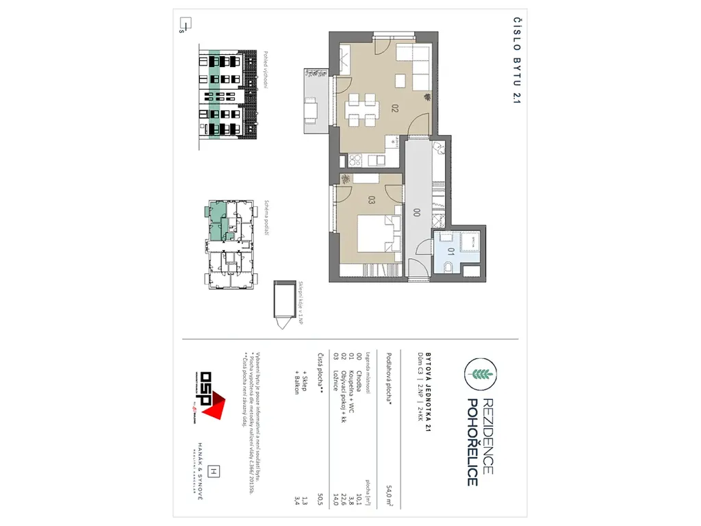 Nabízíme úplně nový byt 2+kk o ploše 53 m2 ve 2. NP. Budete prvním nájemníkem.
