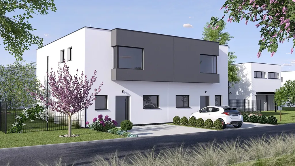 V horním patře budou dva pokoje vedle sebe o velikosti 12,8m2, koupelna s vanou a sprchovým koutem. Dále pro Vás bude připravená šatna o velikosti 7,38m2, přes kterou se ocitnete v ložnici. Velká výhoda v tomto domě je, že i pro Vás máme soukromou koupelnu i v ložnici.