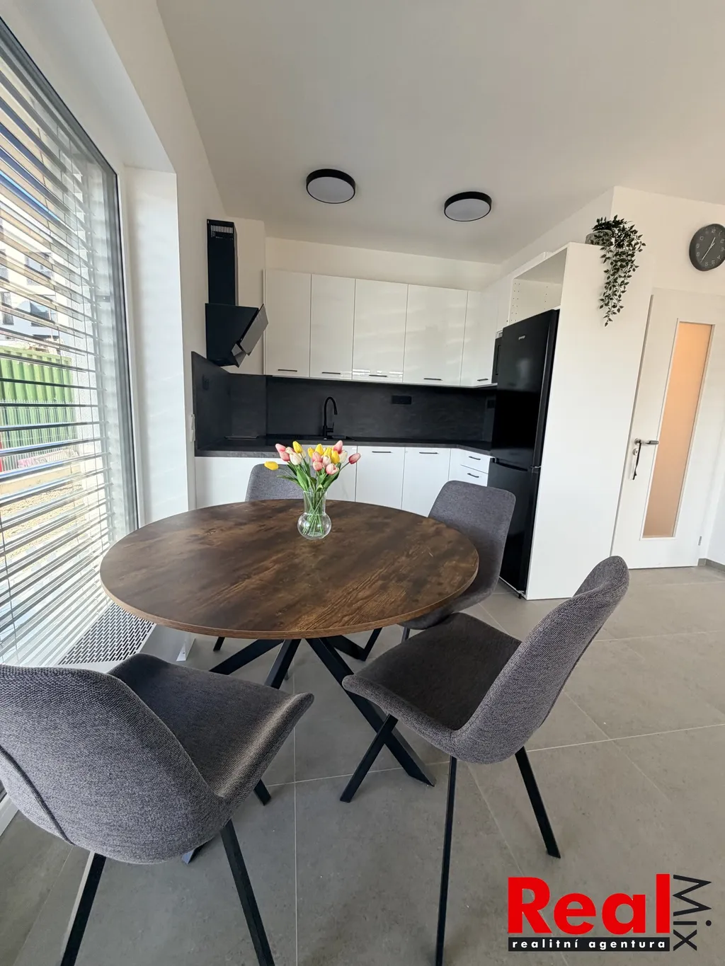Nabízíme pronájem velmi pěkné a kompletně zařízené novostavby bytu 3KK s terasou, vlastní zahradou 89m2 a venkovním parkovacím stáním v Pohořelicích na ulici U Kasáren. Kolaudace domu 2025/26, v bytě ještě nikdo nebydlel. Byt je situován v 1. NP cihlové novostavby, byl právě dokončený a je kompletně zařízen nábytkem i spotřebiči dle přiložené fotodokumentace (bez postele a sedačky), CP bytu je 68m2 + zahrada + venkovní parkovací stání + sklep. V bytě je pěkná kuchyňská linka na míru včetně veškerých vestavěných spotřebičů, dále je byt kompletně zařízen nábytkem i spotřebiči dle fotodokumentace (pouze bez postelí a sedačky), na podlahách je v celém bytě kvalitní velkoformátová dlažba, koupelna je s velkým sprchovým koutem, samostatné WC, přístup na zahradu je ze všech místností. V oknech jsou venkovní elektrické žaluzie. K bytu patří zděný sklep 2m2 přímo na patře. Orientace bytu je na jihozápad. Byt se nabízí vybavený dle fotodokumentace, pěkná kuchyňská linka, velké množství prostorných skříní, spotřebiče, jídelní stůl atd. Nízké měsíční náklady na bydlení. Parkovací stání přímo před domem. V obci kompletní občanská vybavenost (nově supermarket a obchodní centrum 2 min. od domu, lékaři, školky, škola atd.), rychlá dostupnost do Brna (do 15ti minut). Majitel požaduje vratnou kauci ve výši min. 30 tis. Kč + provize RK. Volné ihned. Více info + prohlídky v RK.