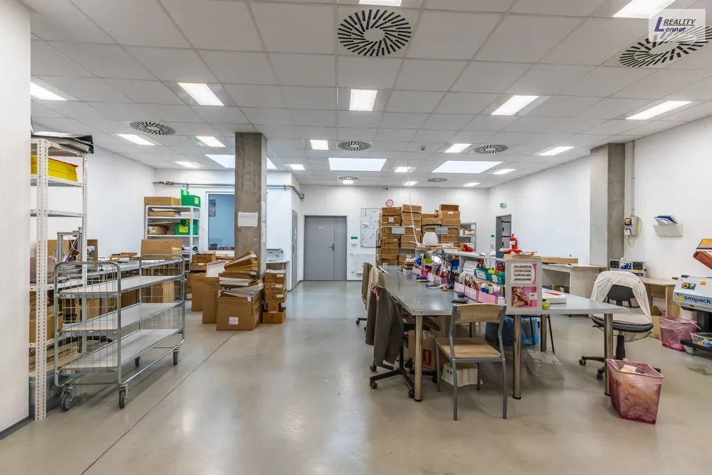 Prostory pro výrobu cca 1.500 m2 a v 1. patře se dále nacházejí převážně kancelářské prostory cca 300 m2 + cca 280 m2 příslušenství.