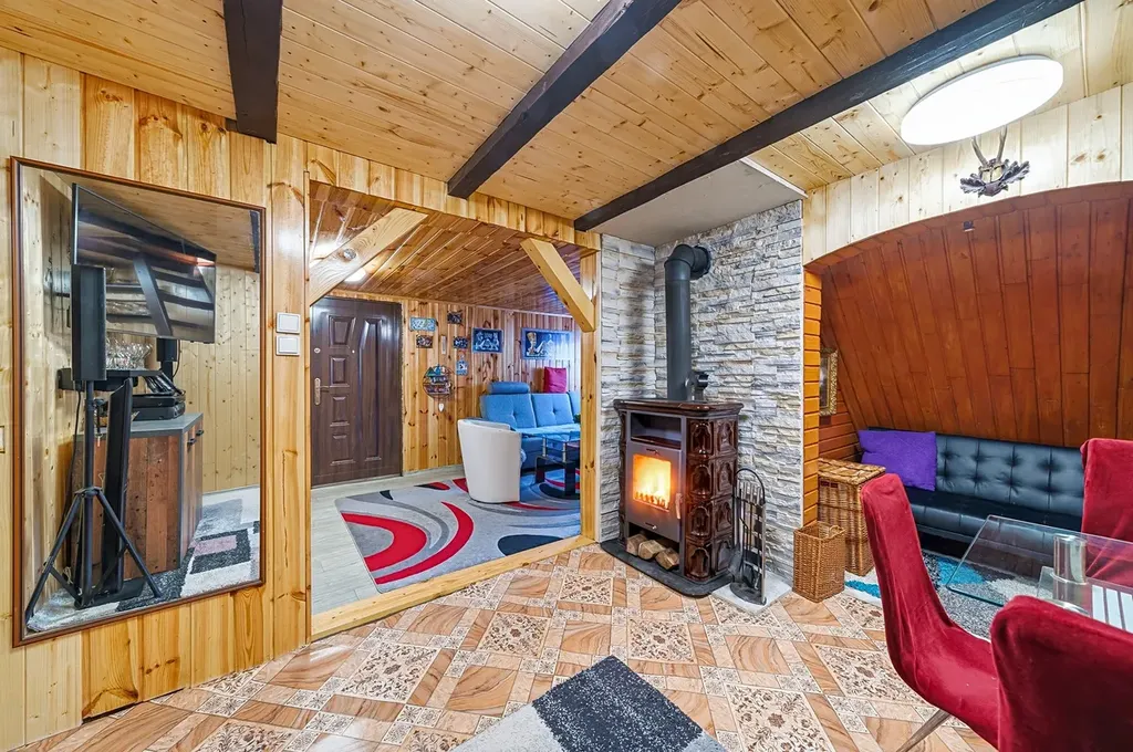 Topení zajišťují krbová kamna o výkonu 7 kw.