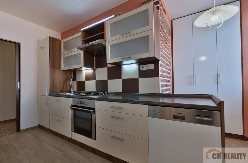 Kuchyňská linka s velkým množstvím úložných prostor + vestavěná trouba, plynová varná deska, myčka, digestoř