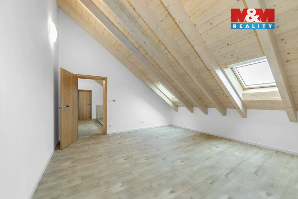 Nabízíme k pronájmu zcela nový mezonetový byt 4+kk o ploše 146 m² v centru Domažlic. Byt se nachází v novostavbě - budete prvními obyvateli. Dispozice je rozdělena do dvou podlaží. Spodní patro tvoří prostorný obývací pokoj s moderní kuchyňskou linkou vybavenou kvalitními vestavěnými spotřebiči (trouba, varná deska, digestoř, mikrovlnná trouba, lednice s mrazákem, myčka nádobí). V bytě jsou dvě samostatné koupelny – každé patro má vlastní koupelnu se sprchovým koutem a toaletou, což zajišťuje maximální komfort a soukromí. Horní podlaží nabízí klidovou část se třemi pokoji a otevřeným prostorem s přiznanými dřevěnými trámy. Byt je velmi světlý a vzdušný. Velkou předností je možnost využití výtahu se vstupem z ulice a možnost dodatečného pronájmu pozemního parkovacího stání. Kompletní občanská vybavenost v docházkové vzdálenosti. Ideální pro náročné klienty hledající nadstandardní bydlení v centru města. Majitel si vyhrazuje právo vybrat nájemce dle vlastního uvážení