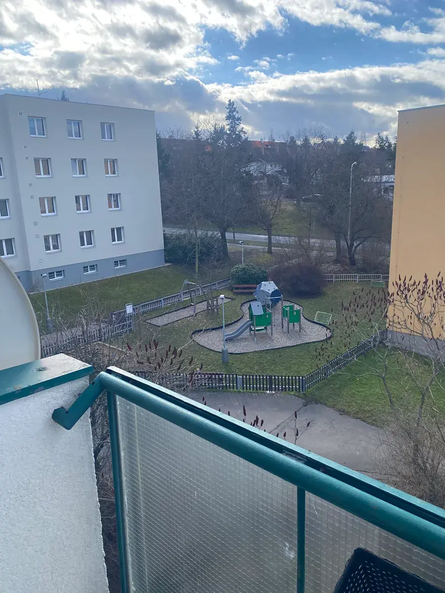 Byt se skládá z prostorného obývacího pokoje s kuchyňským koutem s plně vybavenou kuchyňskou linkou, dále se vstupem na balkon s krásný otevřeným výhledem na centrum města.