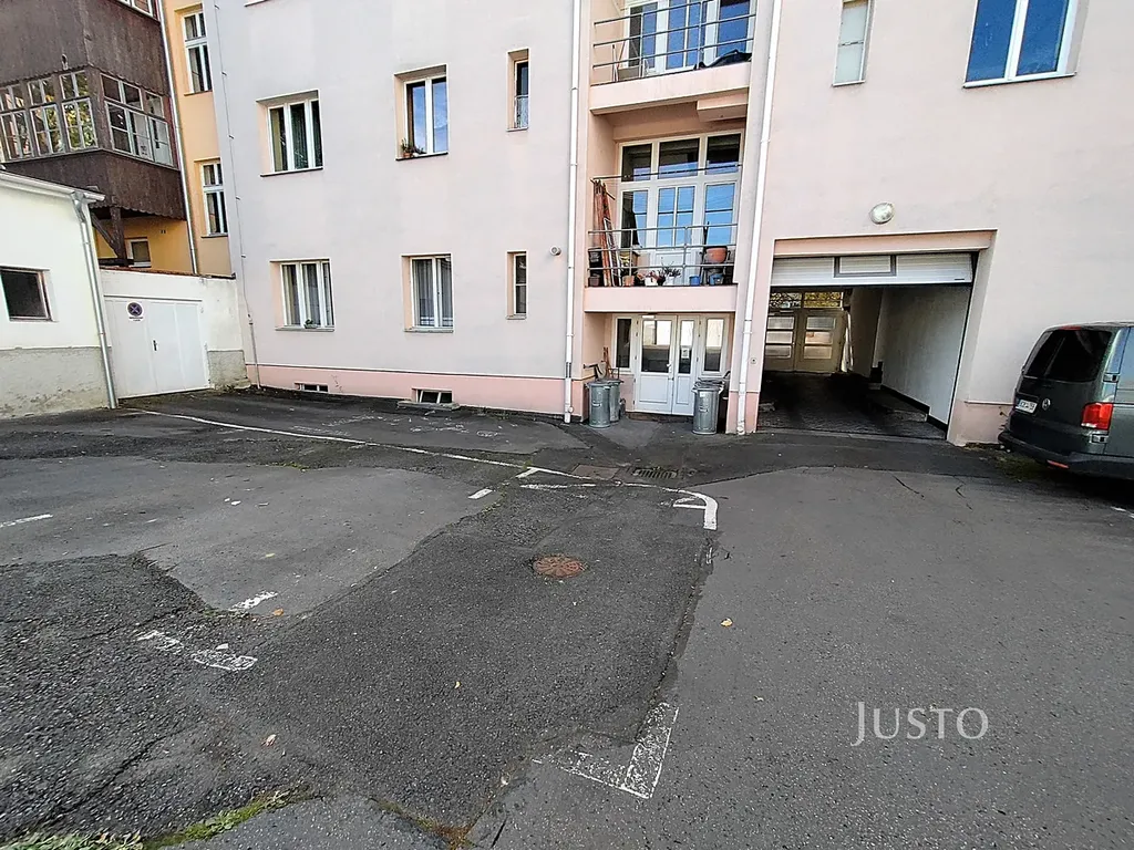 Velkou přidanou hodnotou je vyhrazené parkovací stání přímo ve dvoře domu. Vjezd je zajištěn vraty na dálkové ovládání, tudíž parkování je pohodlné i při vyšším provozu v centru města.