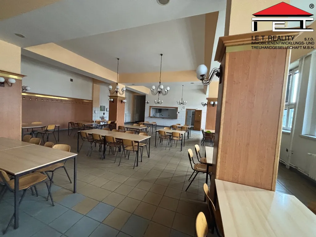 Prostory původně využívané jako jídelna a kantýna, aktuálně připravené pro nové využití.