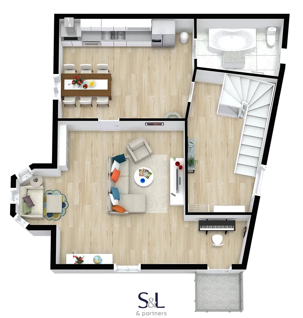 Přízemí (89 m²) – bytová jednotka 2+kk s koupelnou