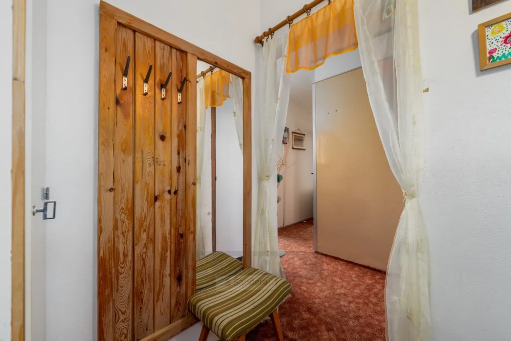 Dispozice: předsíň s předsíňovou stěnou, chodba do L s vestavěnou šatní skříní, původní udržované bytové jádro, samostatná koupelna s menší vanou, umyvadlem a prostorem pro pračku, samostatné WC, samostatná, prostorná ložnice, hlavní obytná místnost s kuchyňskou stěnou, s jídelním prostorem a obývací plochou se vstupem na balkon s otevřeným výhledem, k bytu náleží sklepní kóje a možnost užívání všech společných prostor v domě.