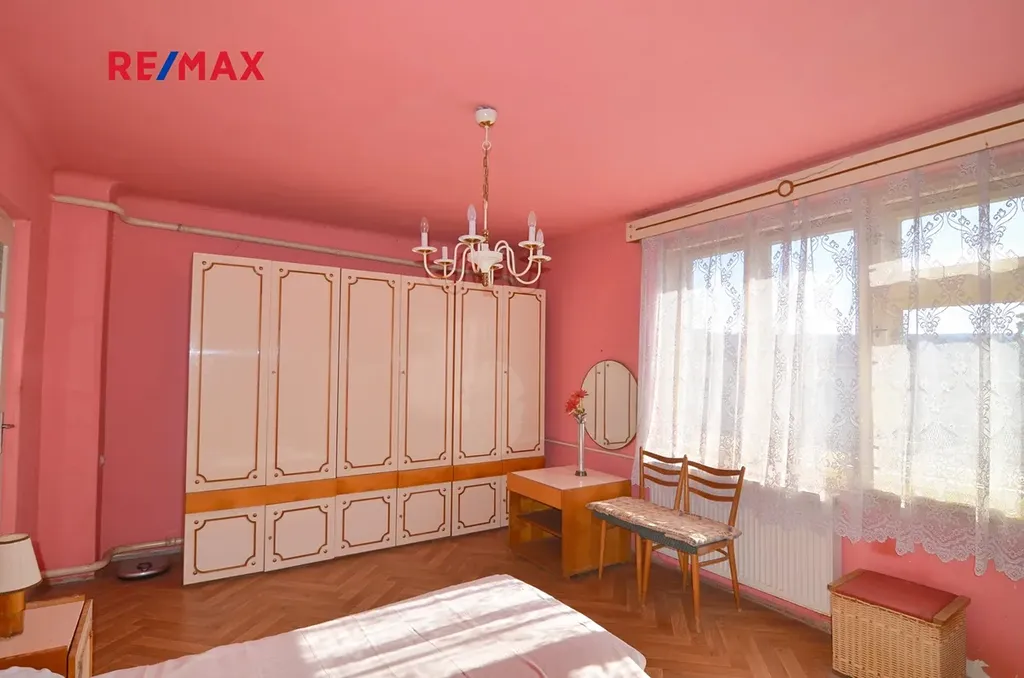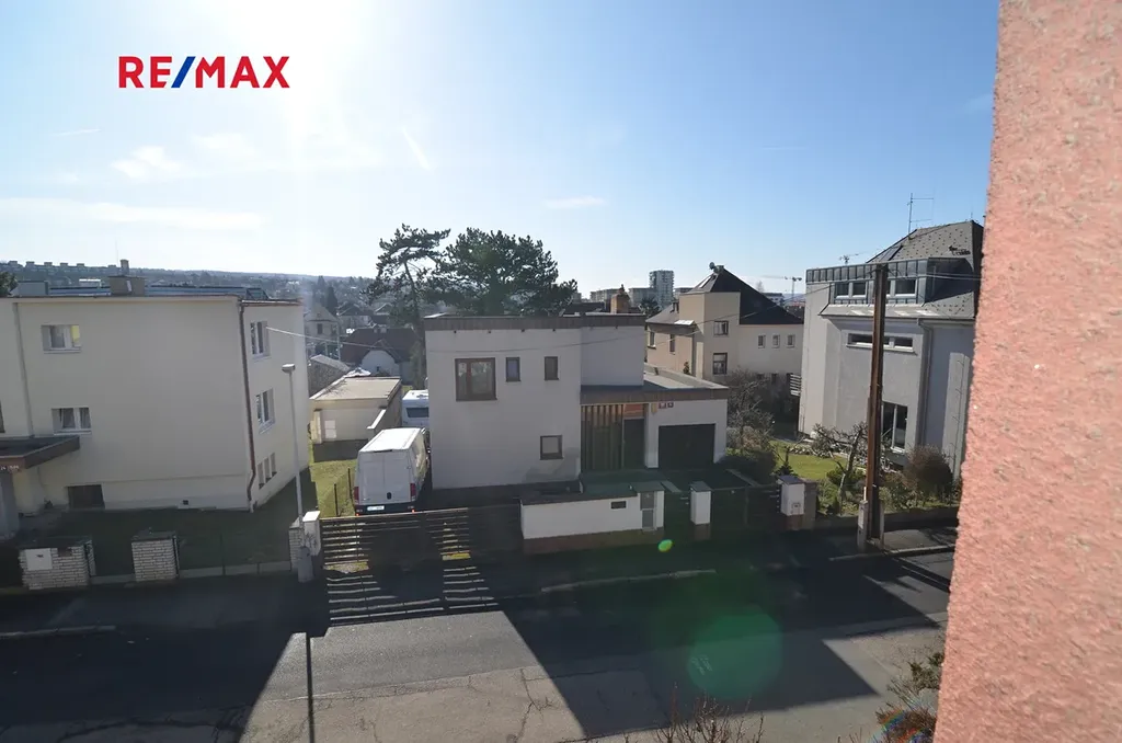 Samotná bytová jednotka (74 m2), která se nabízí, se nachází v 1. patře a je přístupná po schodišti ze společného zádveří. K dispozici je pak také polovina sklepu v suterénu domu o velikosti 13 m2 a další skladovací prostory na nižší půdě nad bytem.