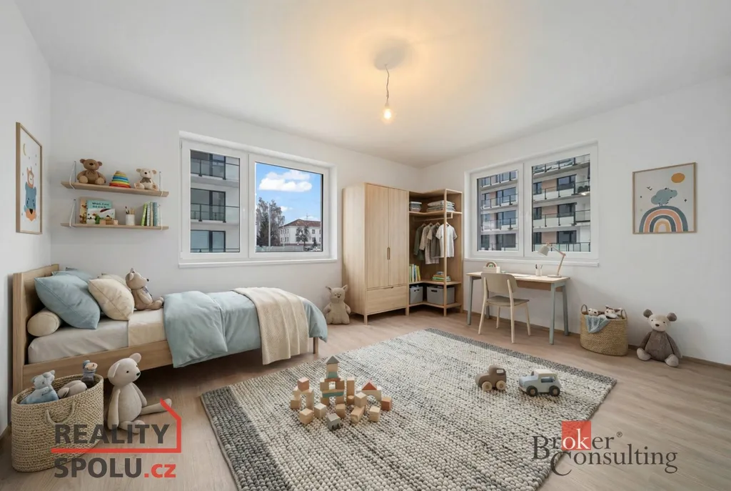 Byt nabízí komfortní rodinné bydlení bez kompromisů. Dominantou je světlý obývací pokoj s přímým vstupem na balkon. Dispozice dále zahrnuje tři samostatné pokoje a velkou výhodou jsou dvě koupelny jedna s vanou a druhá se sprchovým koutem, což výrazně zvyšuje pohodlí pro vícečlennou rodinu. Byt je orientovaný na jihovýchod.