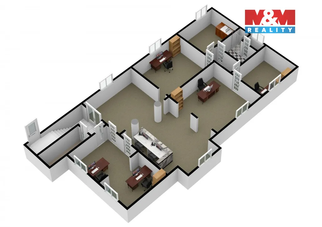 Nabízíme k pronájmu obchodní prostory v centru města Kladna, které jsou vhodné pro obchod, služby, nebo kanceláře. Prostory o celkové ploše 140 m2 jsou tvořeny vstupní chodbou, velkou místností s recepcí, kuchyňkou, koupelnou s WC a sprchovým koutem a několika samostatnými místnostmi.